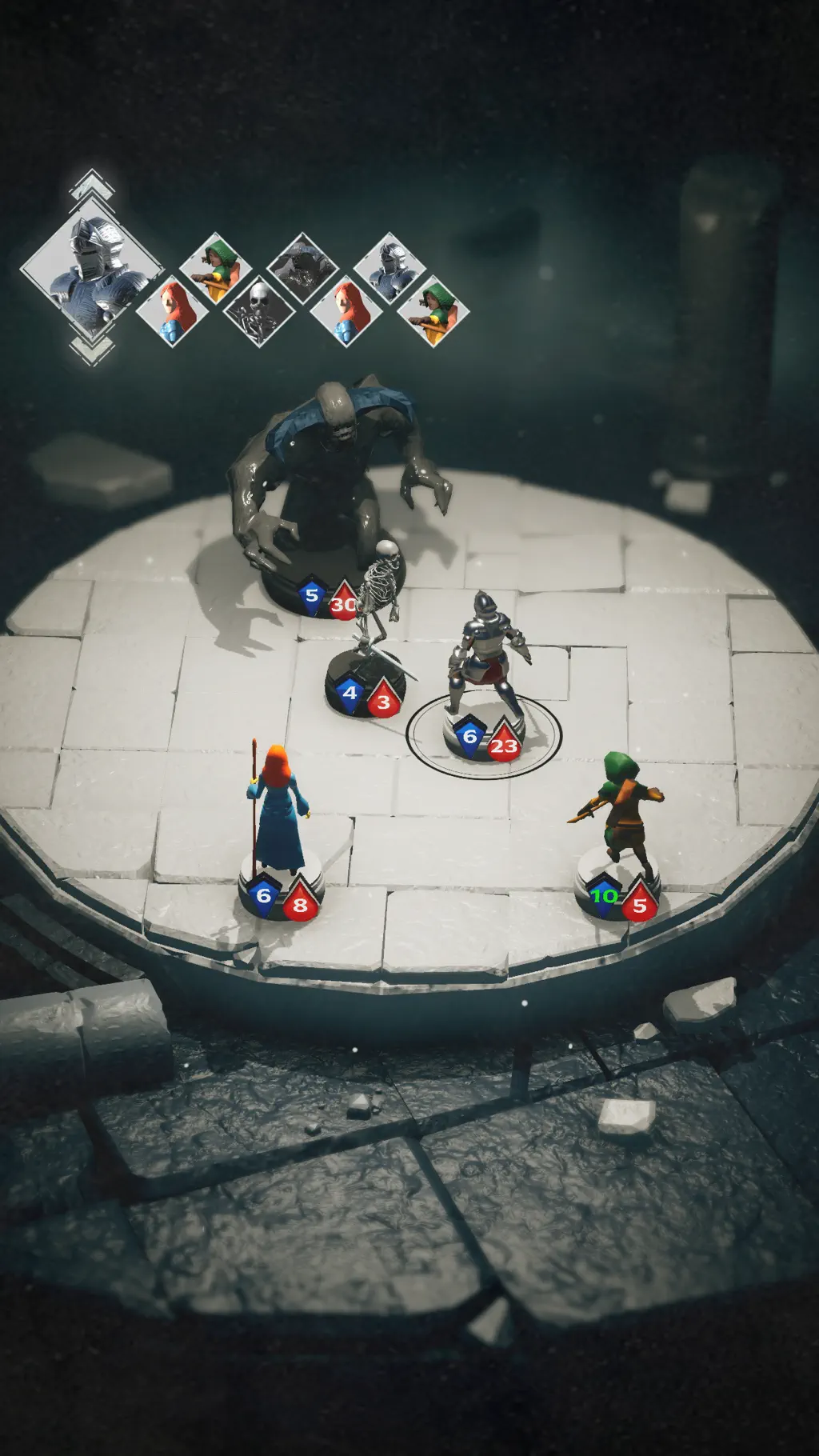 Fallen of the Round is one of the most visually distinctive roguelikes I've played in years. It leans entirely into a 'physical tabletop' aesthetic, with 3D graphics that look exactly like painted miniatures on a dungeon board. This isn't just a gimmick; it impacts the gameplay, as the movement and combat feel like you're physically sliding pawns across a table. It’s incredibly satisfying to 'flick' your miniature into an enemy and watch the physics-based impact.